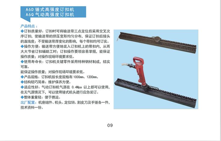 淄博某某機械廠是生產運輸皮帶扣,強力皮帶扣,礦用皮帶扣,手拉式訂扣機,高強度訂扣機,錘式訂扣機的專業生產廠家,種類齊全,為新老客戶提供A6錘式/氣動高強度訂扣機報價請撥打網站 http://www.02lj.cn 上的聯系方式獲取